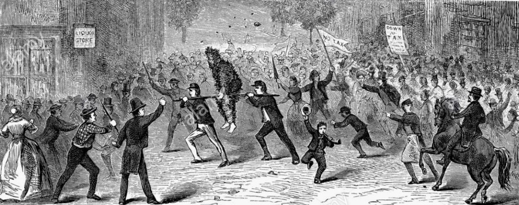 Image 2: Artistic depiction of the tarring and feathering attacks used against the tax collectors (Ladenburg, 2007)